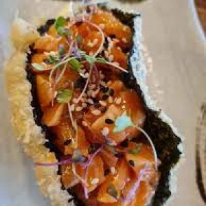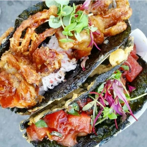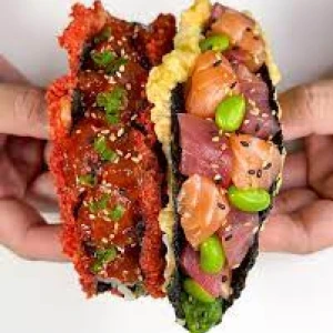 Un croustillant irrésistible à chaque bouchée ! Nos tacos japonais revisitent la street food avec une feuille de nori frite, garnie d’ingrédients frais. À déguster chaud ou froid pour une pause gourmande originale.