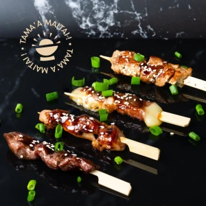 L’art du grill japonais : des yakitoris marinés, caramélisés et grillés à la plancha pour un goût unique. À savourer seuls ou en accompagnement.